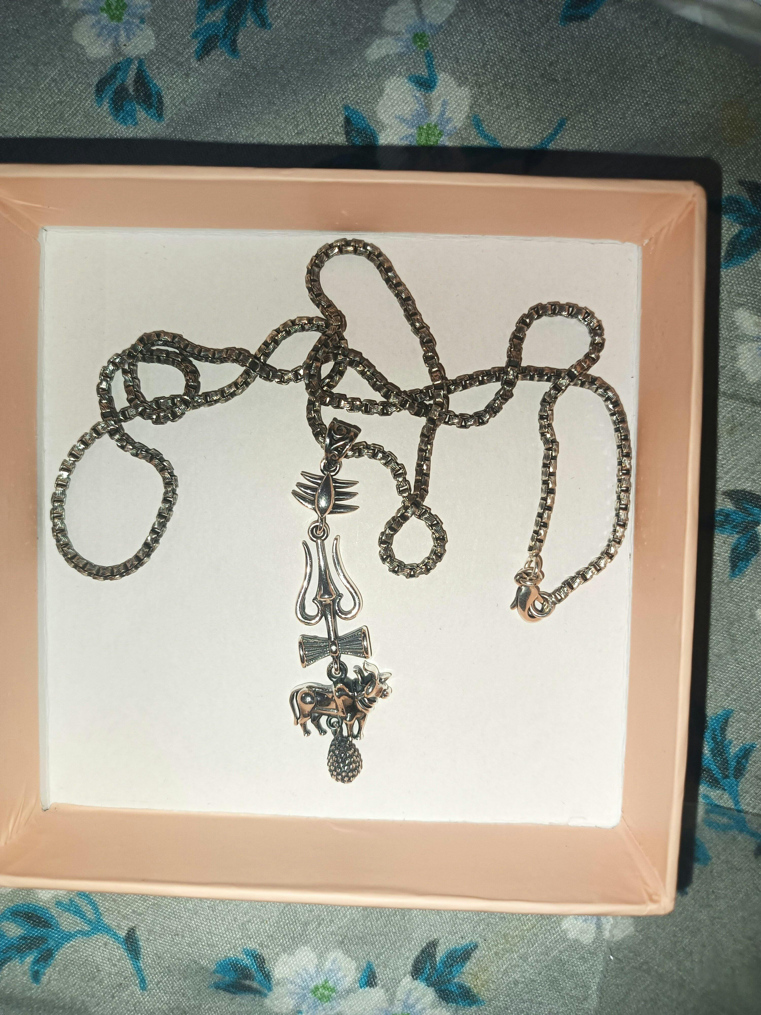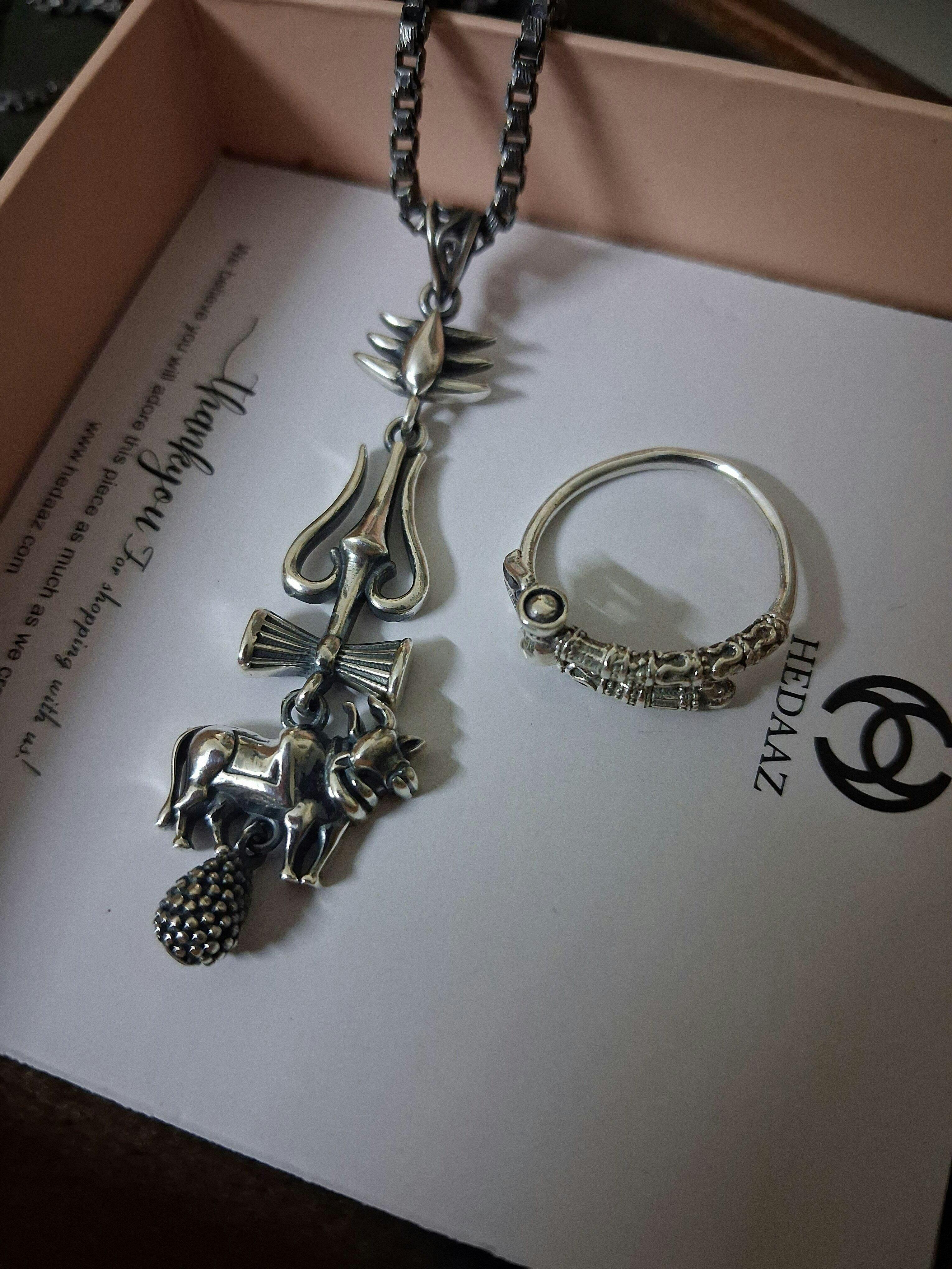 Celebrate devotion and style with the Shivnandi Pendant, worn by South Indian superstar Mahesh Babu in his upcoming movie SSMB29. Crafted in durable Italian Brass with radiant 999 Pure Silver Plating, this powerful pendant unites Mahadev’s sacred symbols—Third Eye, Trishul, Damru, Nandi Maharaj, and Bell—each blessing the wearer with protection, strength, and spiritual energy. A timeless piece that blends celebrity style with divine faith.